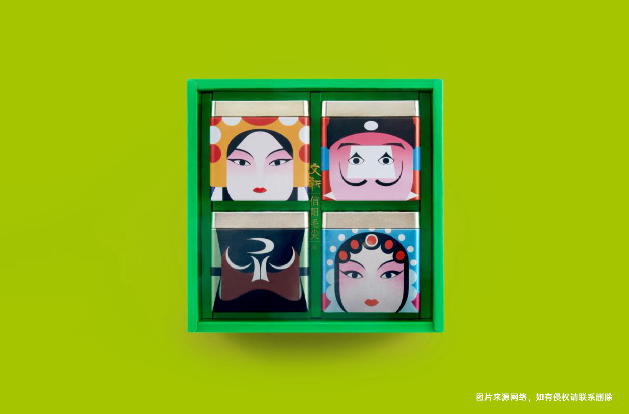傳統(tǒng)品牌完全可以借勢新國潮文化,打造時(shí)尚形象來推動(dòng)企業(yè)年輕化轉(zhuǎn)型,令年輕人對(duì)企業(yè)品牌產(chǎn)生新的印象。例如文新信陽毛尖,把京劇的臉譜用平面幾何體組合的形式呈現(xiàn)出來,既普及了京劇的臉譜文化,又為品牌帶來了全新的時(shí)尚感,俘獲了不少年輕人的心,在不知不覺中,其年輕化的品牌形象就穩(wěn)固在了用戶心中。