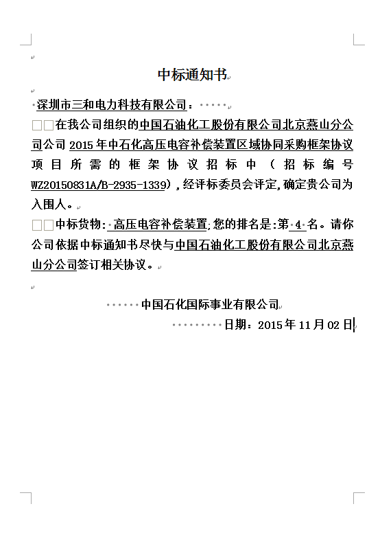 案例內(nèi)容:2015年我公司中標(biāo)中石化電容器項目