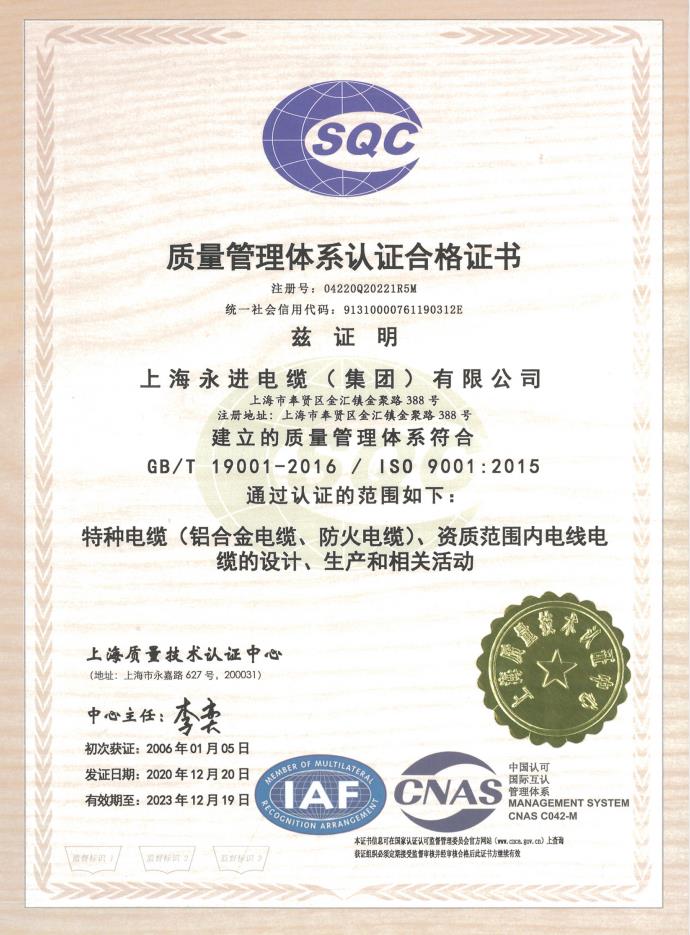 質(zhì)量管理體系認(rèn)證合格證書(shū)