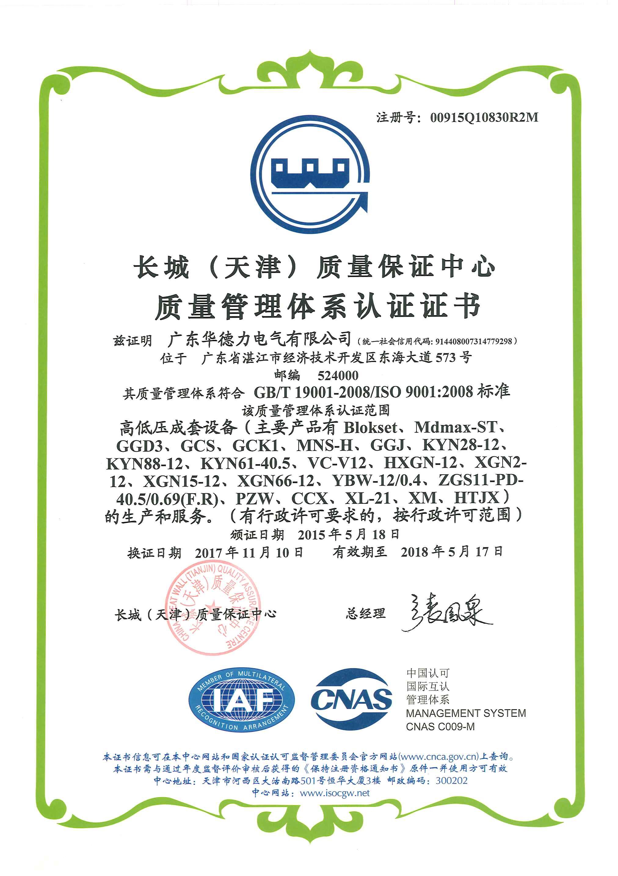 質(zhì)量管理體系認(rèn)證證書(shū)
