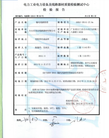產(chǎn)品檢驗報告