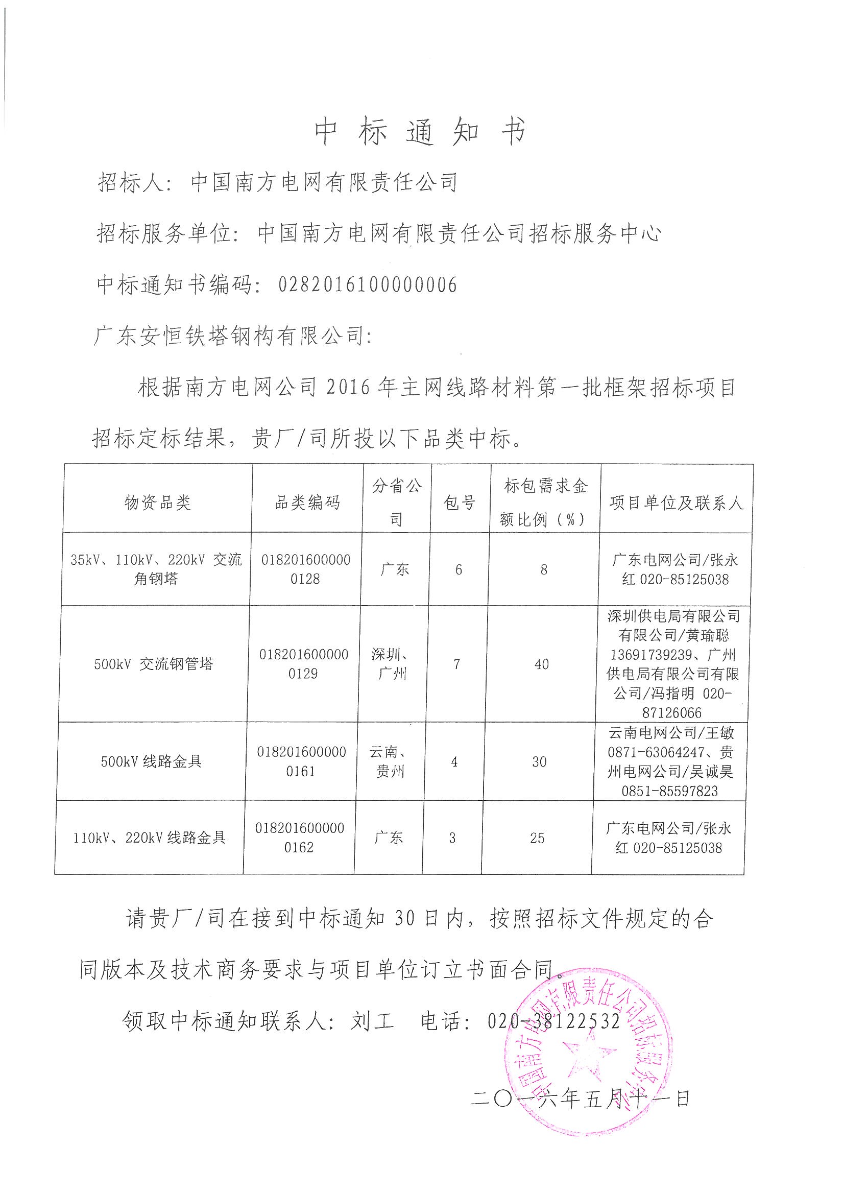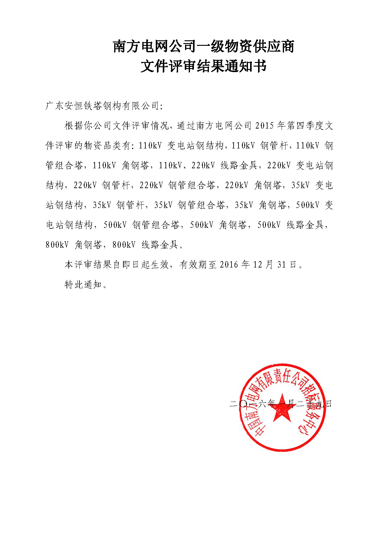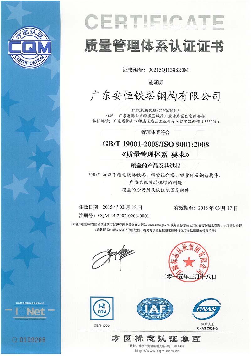 廣東安恒鐵塔鋼構(gòu)有限公司成立于1986年,前身為佛山供電局下屬公司,隨著電力體制的改革發(fā)展,廣東安恒公司已發(fā)展為同時擁有經(jīng)營鐵塔生產(chǎn)的分公司和經(jīng)營電力金具的控股公司。公司主營輸電設(shè)備設(shè)計、制造;鐵塔、金屬構(gòu)件設(shè)計、制造、安裝;電力技術(shù)咨詢;電力安全工具檢測,金屬材料測試;銷售:輸電、變電、配電設(shè)備和金屬材料(不含貴金屬);電力金具設(shè)計、制造、安裝;普通貨運;貨運進(jìn)出口、技術(shù)進(jìn)出口;復(fù)合材料產(chǎn)品的生產(chǎn)與銷售。(依法需經(jīng)批準(zhǔn)的項目,經(jīng)相關(guān)部門批準(zhǔn)后方可開展經(jīng)營活動)。點擊查看