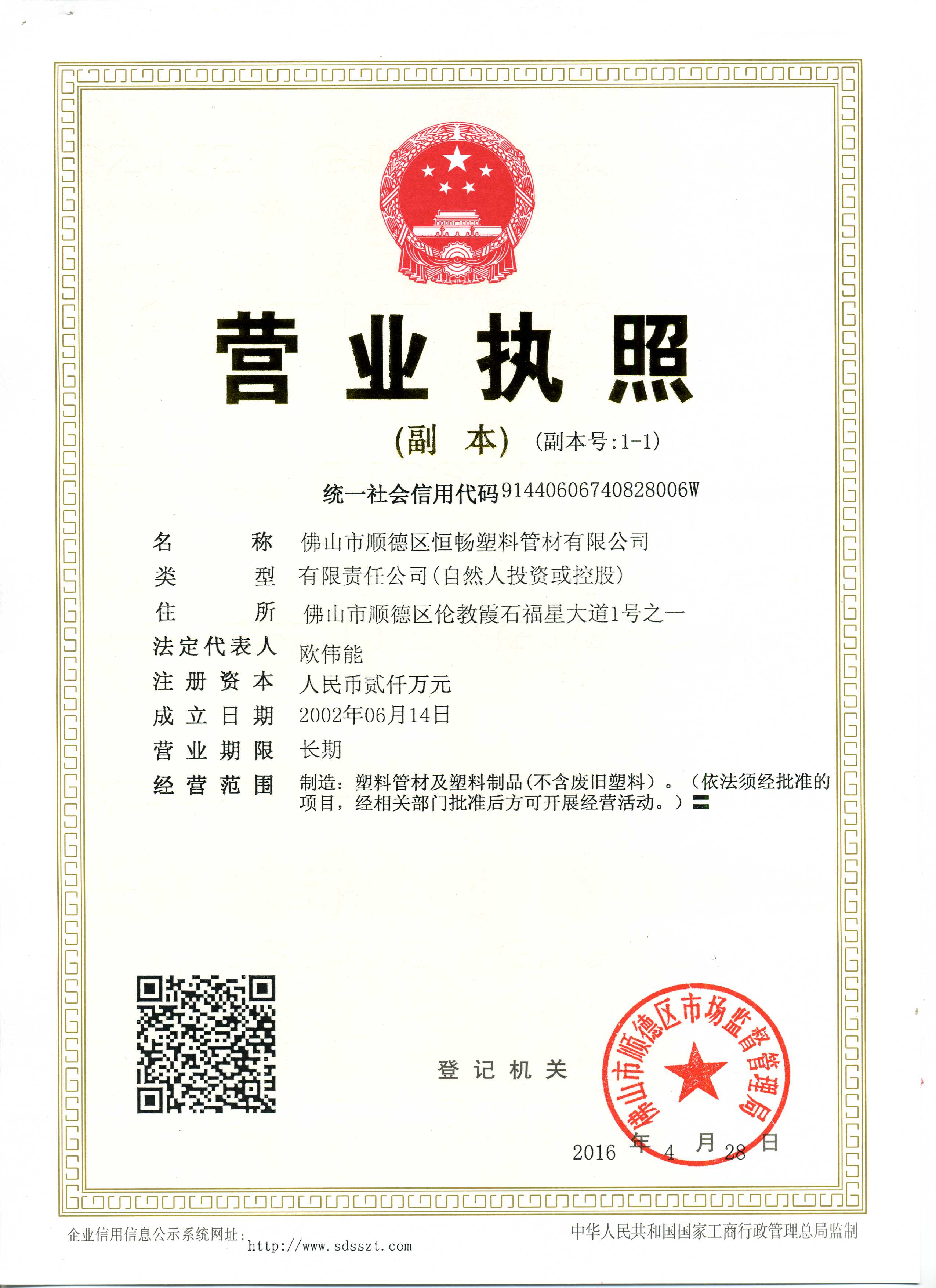 佛山市順德區(qū)恒暢塑料管材有限公司成立于2000年,座落于人杰地靈的珠三角中心地帶---順德,交通便利,地理位置優(yōu)越。公司擁有倫教霞石、北滘西海兩處生產(chǎn)基地,二十條國內(nèi)先進的生產(chǎn)線,專業(yè)從事HDPE、PVC系列電力電纜保護套管,HDPE、MPP非開挖用頂管、碳素螺紋電纜保護管及其它管材的研發(fā)、生產(chǎn)和銷售,年生產(chǎn)能力達3萬噸以上?!昂銜场迸齐娏﹄娎|保護管被廣泛用于城鄉(xiāng)電力電網(wǎng)建設及改造工程、電信及光纜線路鋪設、工業(yè)園區(qū)建設和房地產(chǎn)開發(fā)等,是理想的電纜、光纜保護管材。 我們的追求與社會對我們的認可 佛山市順德區(qū)恒暢塑料管材有限公司于2002年通過ISO9001:2000質(zhì)量管理體系認證?!昂銜场迸葡盗挟a(chǎn)品經(jīng)佛山市質(zhì)量計量監(jiān)督檢測中心和廣東省質(zhì)量監(jiān)督塑料管材管件檢測站檢測,各項性能指標均達到或超過國家建材行業(yè)標準和電力行業(yè)標準的要求。“恒暢”牌系列產(chǎn)品現(xiàn)已成為電力行業(yè)內(nèi)大多數(shù)設計和施工單位的首選,并多次被政府和權威機點擊查看