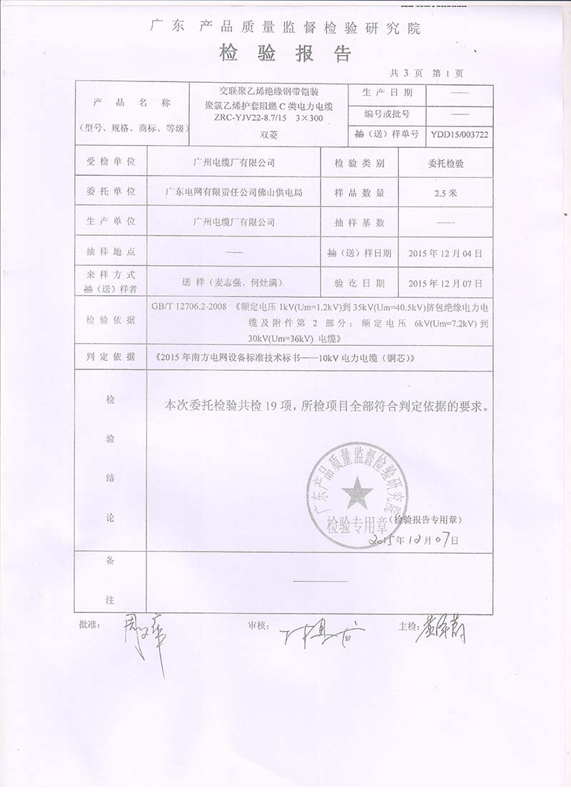 廣州電纜廠有限公司簡(jiǎn)介 廣州電纜廠有限公司創(chuàng)建于1956年,法定為廣州市南沙區(qū)欖核鎮(zhèn)欖張路51號(hào),是目前廣東省歷史悠久、規(guī)模較大、產(chǎn)品種類最多、綜合經(jīng)濟(jì)實(shí)力最強(qiáng)的國有電線電纜制造企業(yè)。公司主要生產(chǎn)電氣裝備用電線電纜、電力電纜、橡套電纜、船用電纜、控制電纜、計(jì)算機(jī)電纜、礦物絕緣電纜等系列產(chǎn)品,廣纜產(chǎn)品均獲得行業(yè)相關(guān)的認(rèn)證認(rèn)可證書及眾多行業(yè)榮譽(yù),“雙菱”牌商標(biāo)獲得“中國馳名商標(biāo)”及“廣州市著名商標(biāo)”稱號(hào)。 公司擁有一批專業(yè)的研發(fā)人員和完善的研發(fā)體系,近兩年獲得4項(xiàng)發(fā)明專利和14項(xiàng)實(shí)用新型專利,參與多項(xiàng)國家標(biāo)準(zhǔn)及行業(yè)標(biāo)準(zhǔn)的制定。同時(shí)公司擁有中國華南地區(qū)規(guī)模最大,手段最齊全的電線電纜檢測(cè)基地,主要生產(chǎn)設(shè)備和測(cè)試設(shè)備從美國、英國、芬蘭、意大利、德國等國家引進(jìn),具有國際先進(jìn)水平。專業(yè)的技術(shù)結(jié)合先進(jìn)的設(shè)備為廣纜產(chǎn)品質(zhì)量提供了保證。 “雙菱”牌電線電纜先后被使用于廣州海心沙、廣州亞運(yùn)城、廣州點(diǎn)擊查看