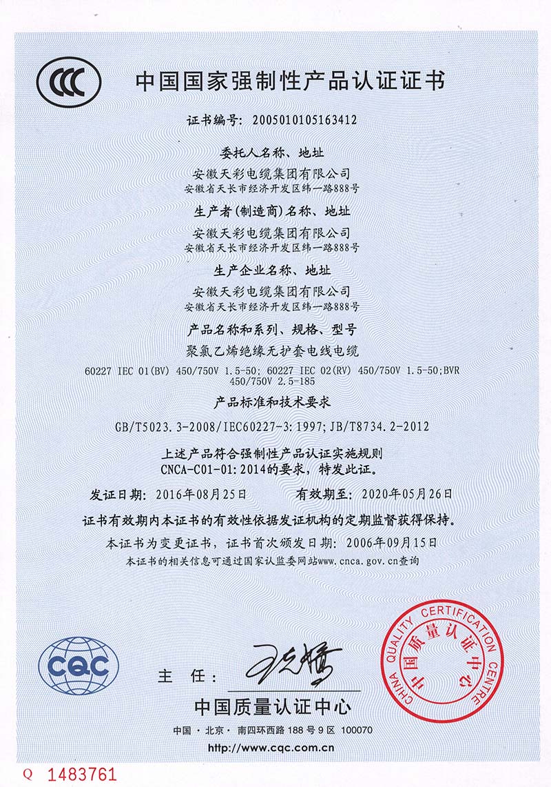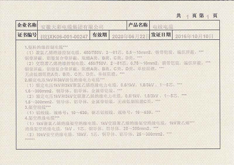 安徽天彩電纜集團(tuán)有限公司位于安徽省儀表、電線、電纜生產(chǎn)基地——天長市,是一家集研發(fā)、生產(chǎn)和銷售為一體的儀表、電線、電纜和橋架生產(chǎn)企業(yè)。公司成立于1992年,注冊(cè)資金26888萬元,總資產(chǎn)超過5億元,建筑面積四萬平方。公司通過ISO9001:2008質(zhì)量體系認(rèn)證、ISO14001:2004環(huán)境體系認(rèn)證、OHSAS 18001: 2007職業(yè)健康安全體系認(rèn)證,全國工業(yè)產(chǎn)品許可證認(rèn)證、CCC認(rèn)證、CE認(rèn)證、煤安認(rèn)證等多個(gè)國家級(jí)權(quán)威機(jī)構(gòu)認(rèn)證。公司被認(rèn)定為“省高新技術(shù)企業(yè)”、先后獲得“滁州市守合同重信用單位”、“滁州市知名商標(biāo)”, “AAA級(jí)信用企業(yè)” 、“安徽省A級(jí)納稅信用單位”等榮譽(yù)稱號(hào),擁有13個(gè)實(shí)用新型專利。 公司生產(chǎn)的電纜產(chǎn)品包括電力電纜、控制電纜、計(jì)算機(jī)電纜、儀表電纜、橡套電纜、特種電纜、汽車新能源充電樁電纜等七大類上萬型號(hào)、規(guī)格產(chǎn)品,生產(chǎn)設(shè)備先進(jìn),檢測設(shè)備齊全,特別是橡套電纜產(chǎn)品,擁有六條現(xiàn)代化連硫生產(chǎn)線,產(chǎn)品電壓等級(jí)覆蓋高、中、低壓,礦用點(diǎn)擊查看