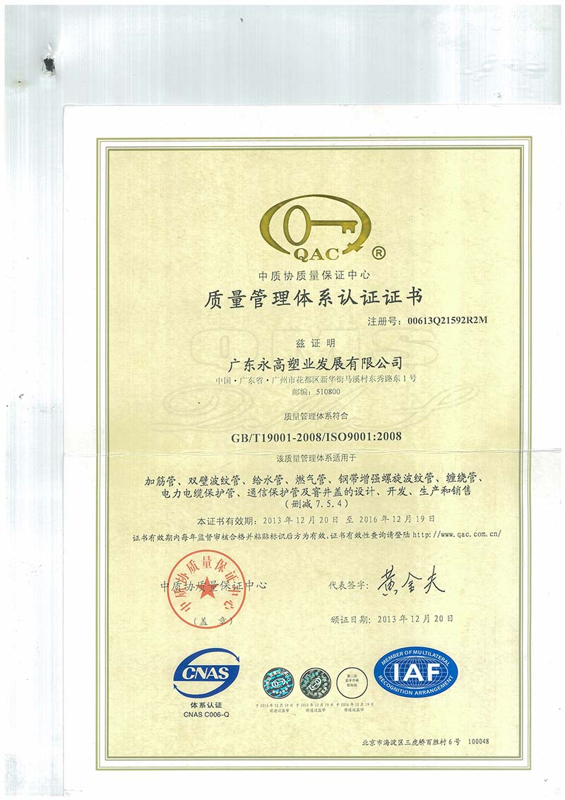 廣東永高塑業(yè)發(fā)展有限公司系國(guó)內(nèi)A股上市的規(guī)模最大的塑料管道公司---永高股份有限公司(股票代碼:002641)的全資子公司。公司位于廣東省廣州市花都區(qū),占地面積22萬(wàn)平方米,是一家專業(yè)從事化學(xué)建材研發(fā)和生產(chǎn)制造的高新技術(shù)企業(yè),系中國(guó)塑料加工工業(yè)協(xié)會(huì)會(huì)員單位,廣東省塑料加工工業(yè)協(xié)會(huì)常務(wù)理事單位,廣東省質(zhì)量檢驗(yàn)協(xié)會(huì)常務(wù)理事單位,廣東省標(biāo)準(zhǔn)化協(xié)會(huì)會(huì)員單位。 公司自創(chuàng)建以來(lái),開(kāi)拓創(chuàng)新,銳意進(jìn)取,努力實(shí)施科技促發(fā)展和打造一流品牌的戰(zhàn)略;堅(jiān)持“市場(chǎng)第一用戶至上、品牌為根、誠(chéng)信為本”的經(jīng)營(yíng)方針。在短短幾年內(nèi)快速發(fā)展,成為國(guó)內(nèi)同行業(yè)知名品牌。目前公司產(chǎn)品銷售網(wǎng)絡(luò)覆蓋國(guó)內(nèi)20多個(gè)省市和地區(qū),特別在華南地區(qū)的廣東、海南、湖南、廣西、福建等地,具有很高的品牌知名度和市場(chǎng)占有率。已先后通過(guò)IS09001:2008質(zhì)量管理體系認(rèn)證、IS014001:2004環(huán)境管理體系認(rèn)證、GBlT28001-2001職業(yè)健康安全管理體系認(rèn)證、并獲得“廣東省守合同點(diǎn)擊查看