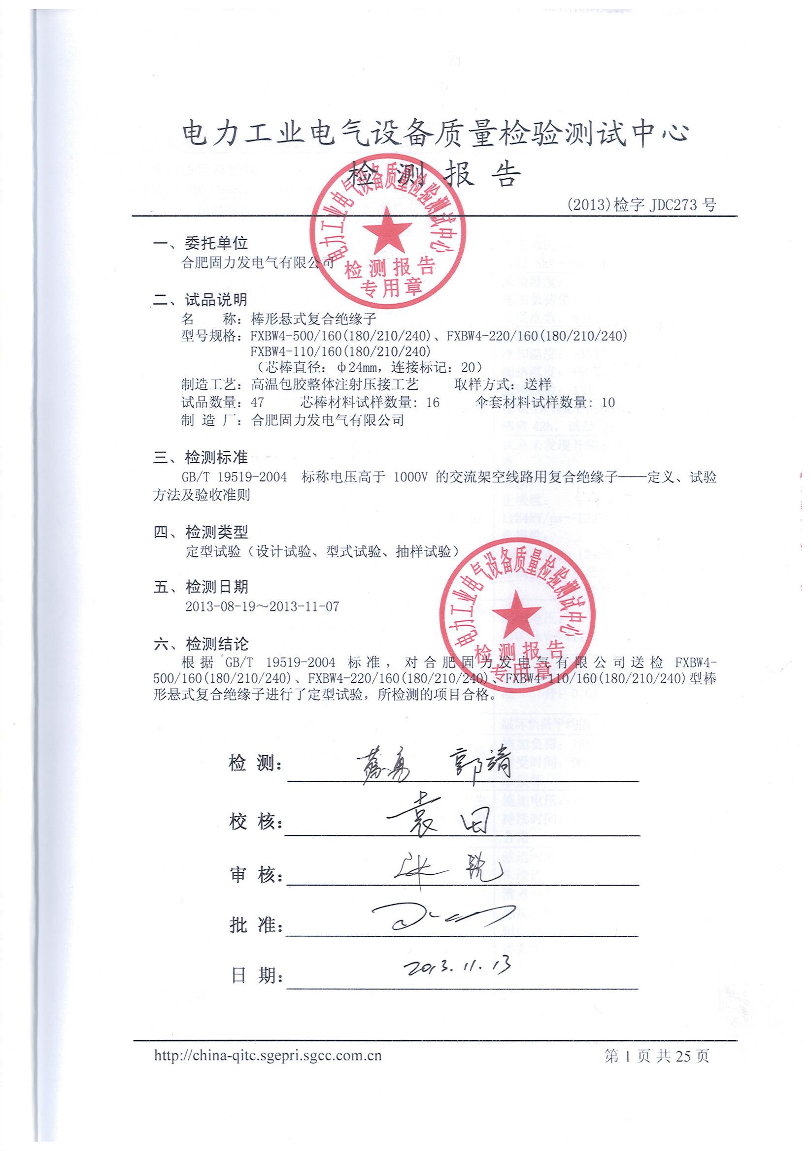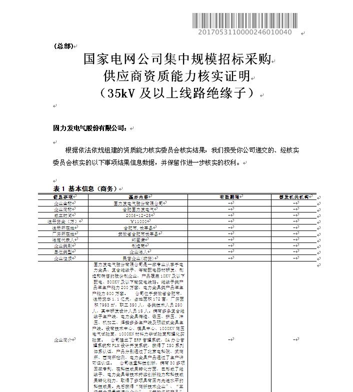 固力發(fā)電氣股份有限公司是由原合肥固力發(fā)電氣有限公司改制后成立的股份有限公司,成立于2006年12月,2014年12月改制為股份有限公司,注冊資本11000萬元。廠房總占地面積200.18畝,規(guī)劃總建筑面積195000平方米,總投資6.6億元。是目前安徽省內(nèi)規(guī)模最大的一家專業(yè)從事復(fù)合絕緣子、電力金具等輸配電器材研發(fā)、制造和銷售的企業(yè)。復(fù)合絕緣子年生產(chǎn)能力為300萬套,電力金具年生產(chǎn)能力3000噸,產(chǎn)能規(guī)模在國內(nèi)排名前十位。公司已通過ISO9001質(zhì)量管理體系、ISO14001環(huán)境管理體系和OHSAS18001職業(yè)健康安全管理體系認(rèn)證;2012年通過國家高新技術(shù)企業(yè)認(rèn)定;2013年榮獲安全生產(chǎn)標(biāo)準(zhǔn)化三級企業(yè)證書、安徽省A級納稅信用等級證書;2013年,“固力發(fā)”牌復(fù)合絕緣子被認(rèn)定為合肥名牌產(chǎn)品;2014年,“固力發(fā)”牌復(fù)合絕緣子被認(rèn)定為安徽名牌產(chǎn)品;2014年榮獲長豐縣縣長質(zhì)量獎。 公司堅(jiān)持“質(zhì)量塑造品牌,科技推動發(fā)展”的宗旨,以“節(jié)能、環(huán)保、安全、免維護(hù)”的產(chǎn)品和周到的服務(wù)點(diǎn)擊查看