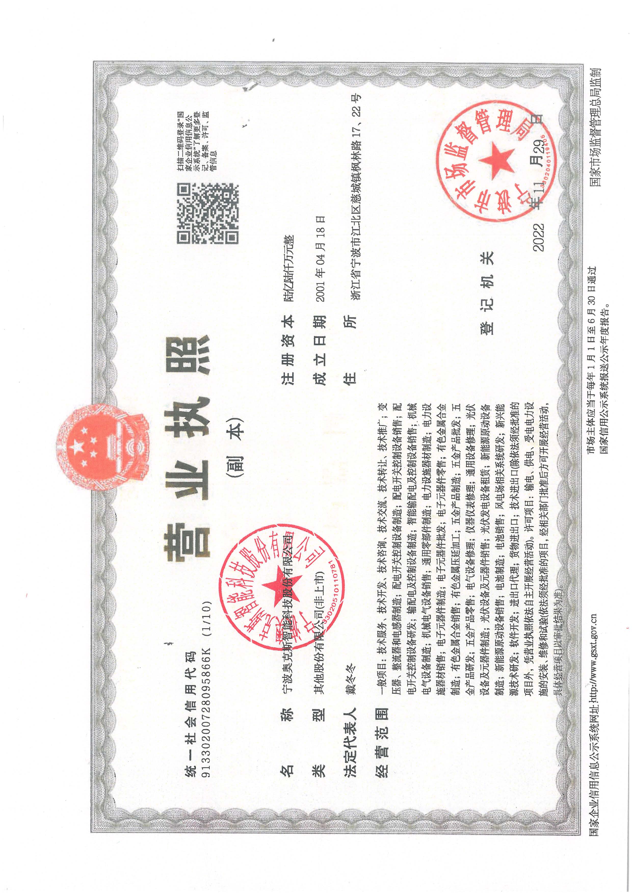 寧波奧克斯智能科技股份有限公司成立于2001年,總投資近叁億元人民幣,注冊資本金:67724.6萬元整。是奧克斯集團下屬的寧波三星醫(yī)療電氣股份有限公司控股公司,現(xiàn)有員工2000余人,其中:中、高級工程師40余人,研發(fā)設(shè)計人員60余人,生產(chǎn)技術(shù)人員80余人,占地面積約20萬平方米,年銷售收入達13億元人民幣。是國家高新技術(shù)企業(yè),浙江省名牌產(chǎn)品,信息化標桿企業(yè),并擁有國家級企業(yè)工程技術(shù)中心,已通過了ISO9001質(zhì)量管理、ISO14001環(huán)境管理和職業(yè)健康安全管理認證及國家強制性產(chǎn)品(CCC及CQC)認證。公司主導產(chǎn)品包括:35kV級及以下干式變壓器;35kV級及以下油浸式變壓器、35kV級及以下非晶合金變壓器、電能計量箱(歐式、美式、地埋式、燈箱式、光伏變)、高、低壓成套開關(guān)設(shè)備、小三箱(配電箱、電纜分支箱、電能計量箱)等產(chǎn)品。點擊查看