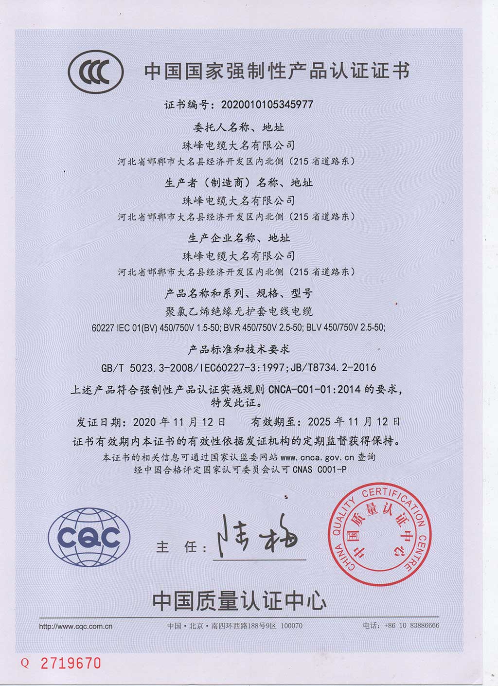 珠峰電纜大名有限公司是按照現(xiàn)代化企業(yè)制度建立的電線電纜專業(yè)制造企業(yè),成立于2014年10月10日,位于河北省邯鄲市大名縣工業(yè)園區(qū)。公司現(xiàn)有員工400多人占地面積6萬平方米,建筑面積4萬平方米,固定資產(chǎn)10億6000萬元,現(xiàn)有生產(chǎn)設(shè)備幾十套,檢測設(shè)備儀器30多套,年生產(chǎn)能力達上億元人民幣。公司通過1S09001國際質(zhì)量管理體系認證,并獲得工業(yè)生產(chǎn)許可證證書、國家強制性產(chǎn)品CCC認證證書,產(chǎn)品歷年來經(jīng)國家檢測中心。省,市等質(zhì)檢部門抽檢均合格。公司生產(chǎn)的產(chǎn)品主要有:護套線、塑銅線、消防線、防火電纜、電力電纜、控制電纜等各種型號的電線電纜。我們憑借豐富的制造經(jīng)驗、雄厚的技術(shù)力量、完整的檢測設(shè)備,為眾多國家重點工程提供了優(yōu)質(zhì)的產(chǎn)品及服務(wù),并在用戶中享有較高的知名度和美譽度。產(chǎn)品廣泛應(yīng)用于電力、建筑、石化、軍工、機械制造、電子、科研、通訊等領(lǐng)域。暢銷全國30多個省市。點擊查看