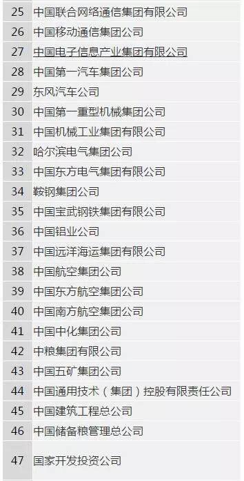 101家最新央企名錄
