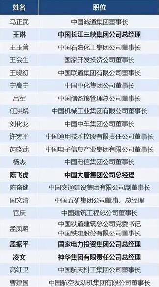 十九大央企代表名單