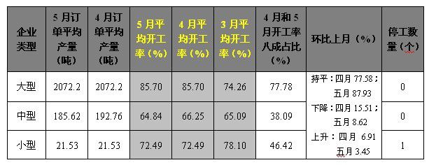 從以上表格數(shù)據(jù)中可知,雖然大型和小型企業(yè)的4月份和5月開工率都是持平的,但相比3月份大型企業(yè)明顯優(yōu)于中小企業(yè),步入了旺季的節(jié)奏。而中小型企業(yè)卻因這期間銅價波動,市場蕭條等影響,較3月份的訂單及開工率都受此拖累,呈現(xiàn)下滑趨勢。小企的某先生告知我們:"這個銅價那么不穩(wěn),今年生意難做死了,虧大了,估計后期也好不到哪里去,趁現(xiàn)在天氣轉(zhuǎn)入夏季,轉(zhuǎn)行做塑料行業(yè)了,之前的生意全部都清理完畢。"
