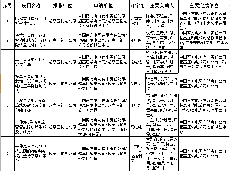 2016年南方電網(wǎng)公司專利獎推薦工作已結(jié)束,公司科技部共收到推薦成果151項,經(jīng)形式審查,共計4個項目推薦材料不合格,不予受理。根據(jù)《中國南方電網(wǎng)有限責任公司科技獎勵管理辦法》,現(xiàn)將形式審查合格的147項專利獎推薦項目的成果名稱、主要完成單位名單、主要完成人員名單和評審組分組情況進行受理公示(詳見附件)