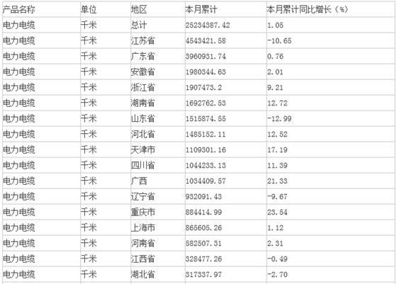 原標題:2015年上半年中國電力電纜產(chǎn)量情況