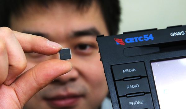 [摘要] 中國(guó)自主研發(fā)全球?qū)Ш较到y(tǒng) 。中國(guó)電子科技集團(tuán)第54研究所導(dǎo)航專業(yè)部的技術(shù)人員展示最新研發(fā)的40納米級(jí)北斗導(dǎo)航芯片