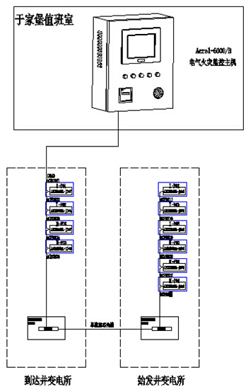 現(xiàn)場(chǎng)始發(fā)井配電室出線柜上安裝的40塊電氣火災(zāi)探測(cè)器通過雙絞線(ZR-RVSP2*1.0)以手拉手方式進(jìn)行通訊連接然后經(jīng)過光貓將電信號(hào)轉(zhuǎn)為光信號(hào)經(jīng)光纖傳輸?shù)降竭_(dá)井配電室,再經(jīng)光貓將光信號(hào)轉(zhuǎn)換為電信號(hào),然后這根總線再接入到達(dá)井配電室出線柜上的23塊電氣火災(zāi)探測(cè)器,最終這根總線接入到于家堡消防控制室的電氣火災(zāi)監(jiān)控主機(jī)上。