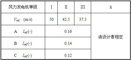 Iref-風(fēng)速為15m/s時(shí)的湍流強(qiáng)度。